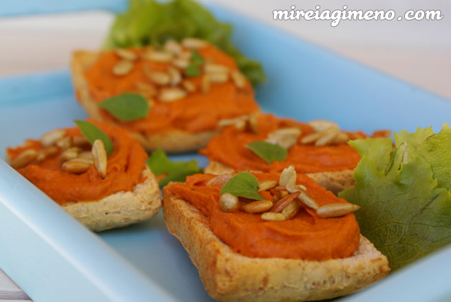 • Triturar los garbanzos con el alga kombu de la cocción, el pimiento rojo, el diente de ajo, la pasta umeboshi, el tahín, y el miso blanco, añadiendo un poco de agua para obtener una consistencia más cremosa.